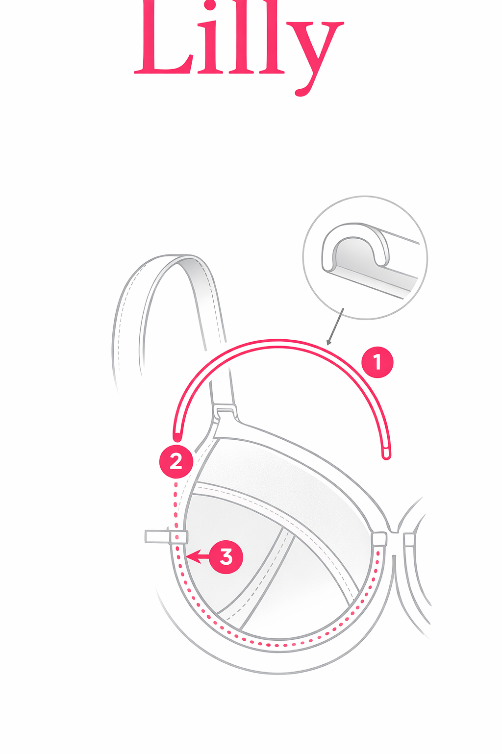 Model Lilly marki Ulla Dessous został wyposażony w praktyczny system odpinania miseczek typu click przy ramiączkach. Dzięki temu możesz wygodnie odpiąć miseczkę jedną ręką – szybko, dyskretnie i bez konieczności zdejmowania biustonosza.
