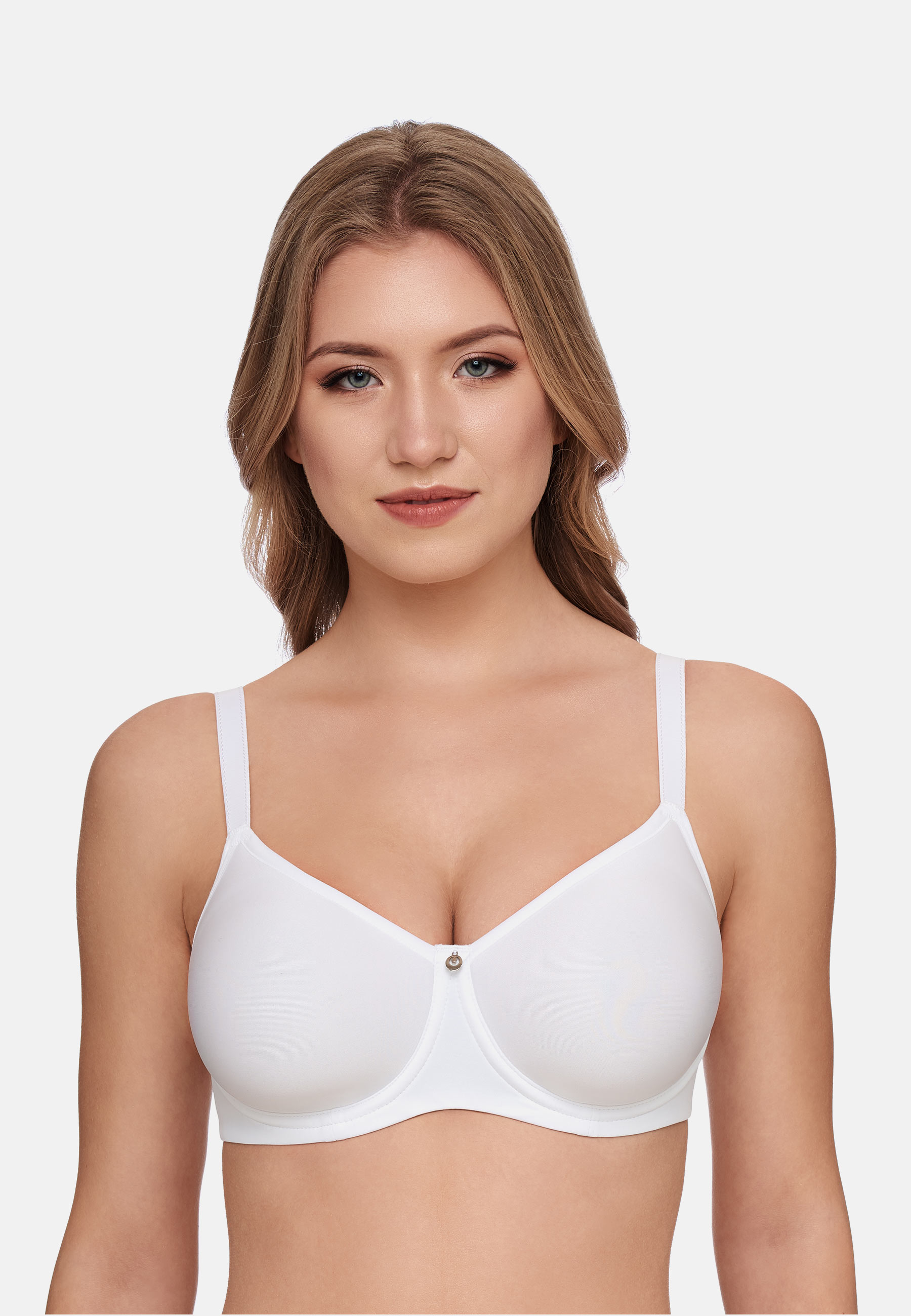 Miseczki są cienkie, a jednocześnie stabilne, dlatego biustonosz nie pogrubia sylwetki i nie tworzy efektu „sztucznego push-up”. To doskonały wybór jako gładki biustonosz pod T-shirt i jasne ubrania.