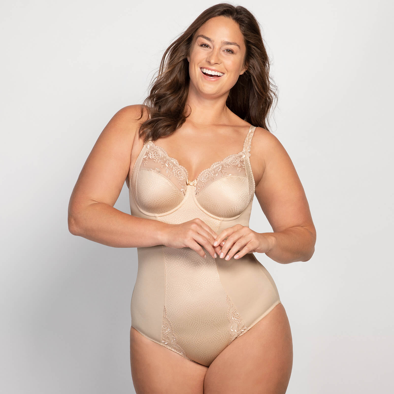 Ten model łączy w sobie funkcję bielizny korygującej z elegancją klasycznej bielizny premium. Ciepły, neutralny odcień biszkoptowy doskonale stapia się z kolorem skóry, dzięki czemu body pozostaje dyskretne nawet pod jasną i dopasowaną odzieżą.