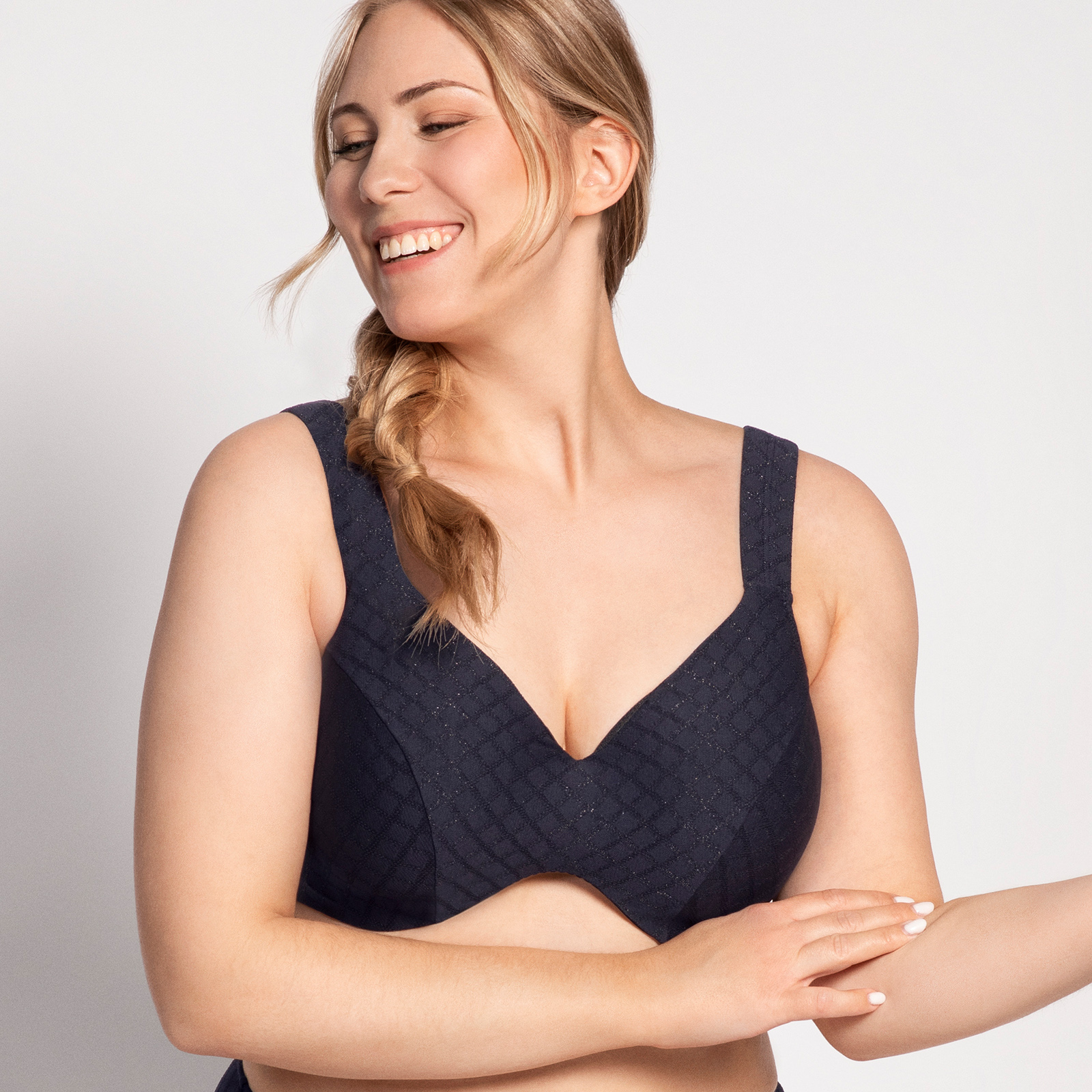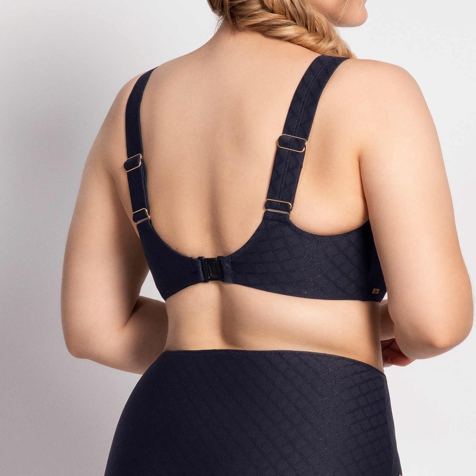 Kostium kąpielowy dwuczęściowy biustonosz z fiszbinami Ulla Dessous Monaco w kolorze granatowym to ekskluzywna góra bikini zaprojektowana z myślą o kobietach z pełniejszym biustem, które oczekują maksymalnego wsparcia, perfekcyjnego dopasowania oraz eleganckiego wyglądu. To model premium, który łączy konstrukcję profesjonalnego biustonosza z wyrafinowanym, ponadczasowym stylem.